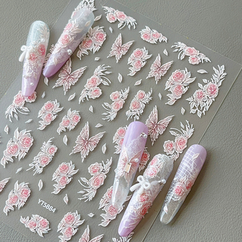 3d-тисненые гипсовые наклейки для ногтей с розой и бабочкой