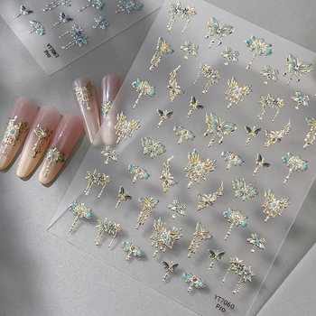 YITU Hot Gold Silver Laser Metal Butterfly Nail Stickers Advanced Retro Versatile Decorative Stickers YT6829