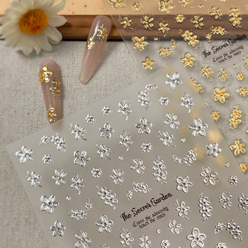 YITU Relief Printemps Blanc Floral Nail Art Sticker Mignon et Frais Autocollant de Décoration Tendance YT6867