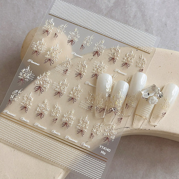 Yitu 3 डी फ्रेंच शैली नाखून कला स्टिकर बंडल उत्कृष्ट चिपकने वाला सजावट ब्रोनजिंग धनुष फूल मैनीक्योर एक्सेसरी yt4140