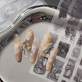 Yitu 3d आकृति फ्लैट लेस नाखून कला स्टिकर फ्रेंच शैली सरल प्यारे इंटरनेट सेलिब्रिटी सजावटी स्टिकर yt5466