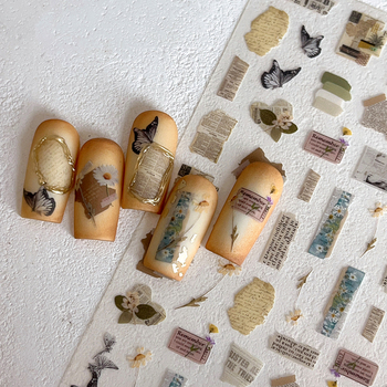 Yitu फ्लैट पुराने कागज नाखून कला स्टिकर-उत्कृष्ट यूरोपीय और अमेरिकी रेट्रो ट्रेंडी डेकोर स्टिकर yt4153