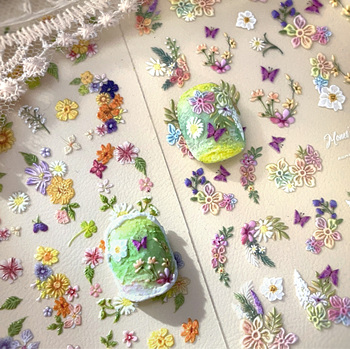 Yitu 3d आकृति वाला मोनेट गार्डन नाखून कला स्टिकर फ्रेंच रंगीन प्यारा फूल सजावटी स्टिकर yt5601 बनाया प्लास्टिक