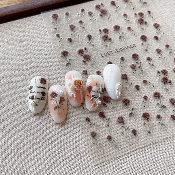 YITU tırnak dekoratif çıkartması kağıt Retro karınca şekil ölü yaprak kuru gül japon Charm plastik yapıştırıcı düz tırnak Sticker YT4187
